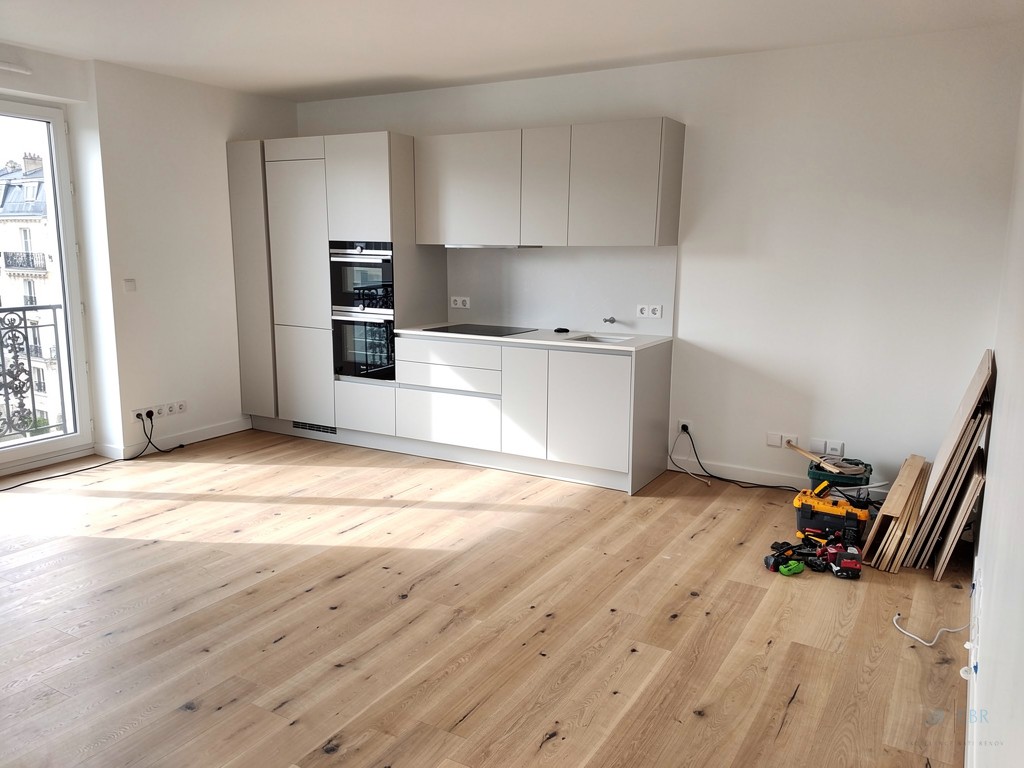 Pour ce projet situé à Paris et en Île-de-France, nous avons mené une rénovation complète tous corps d’état en 6 semaines. Le réagencement intérieur, la modernisation électrique, la reprise plomberie et l’installation d’une cuisine neuve ont transformé le logement. La rénovation de la salle de bain, le remplacement des sols et la peinture complète ont apporté une modernisation totale, une optimisation des volumes et une amélioration durable du confort, renforçant la valeur immobilière.
