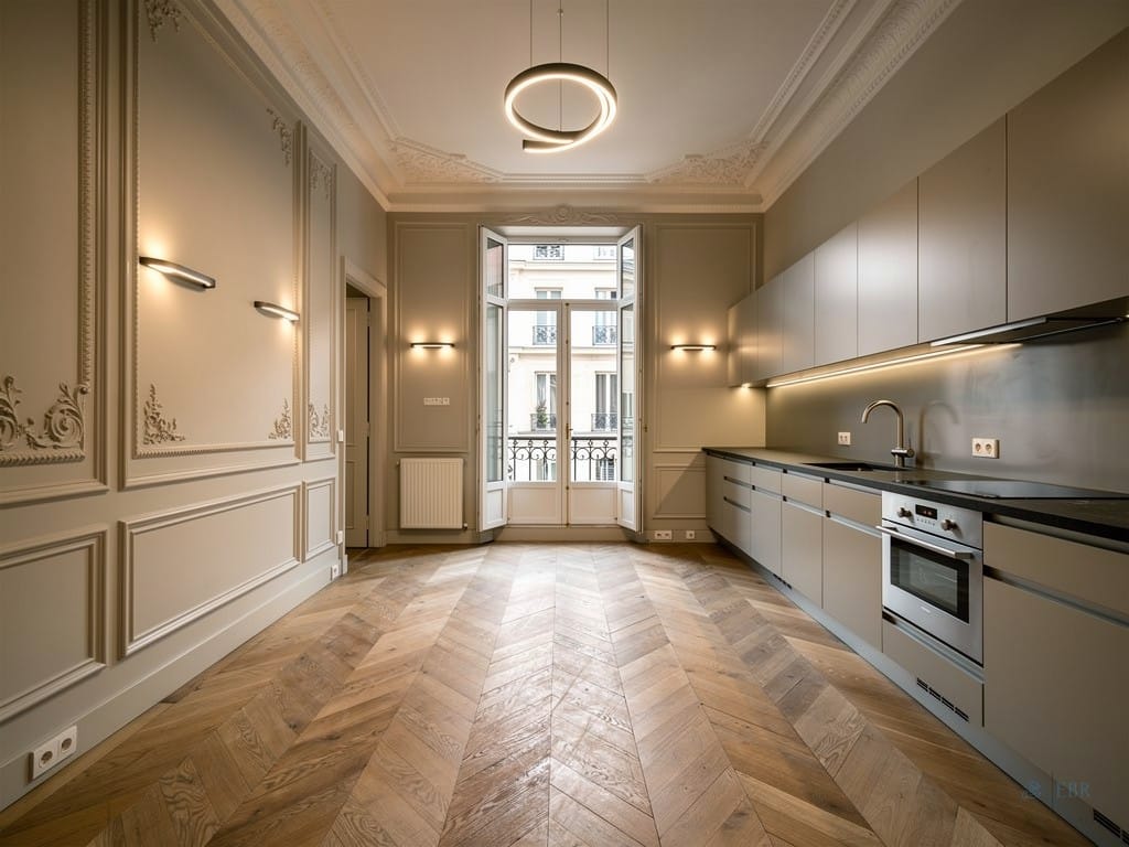 Nos équipes maîtrisent aussi bien la restauration d’appartements haussmanniens aux moulures et parquets traditionnels que la modernisation de logements contemporains près des Champs-Élysées ou du boulevard Haussmann.